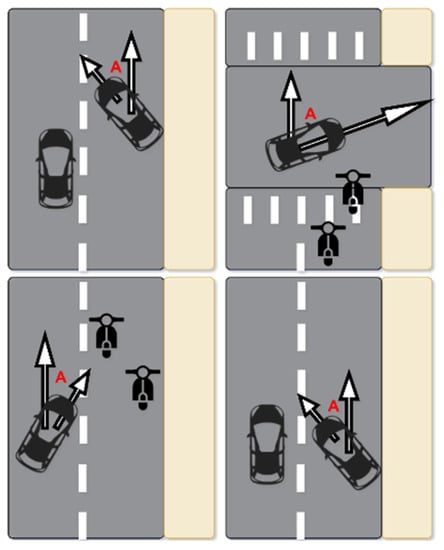 - Nguyen-Phuoc, D.Q.; Oviedo-Trespalacios, O.; Vo, N.D.Q.; Le, Q.T.; Su, D.N.; Cao, M.X. Prevalence and factors associated with turn signal neglect-related crashes among motorcyclists and car drivers in Vietnam. Transp. Res. Part F Traffic Psychol. Behav. 2020, 73, 38–49. [Google Scholar] [CrossRef]