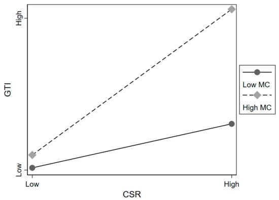 Diagram of the Moderating Effect of MC. It means that MC (media coverage) can strengthen the effect of CSR on GTI.