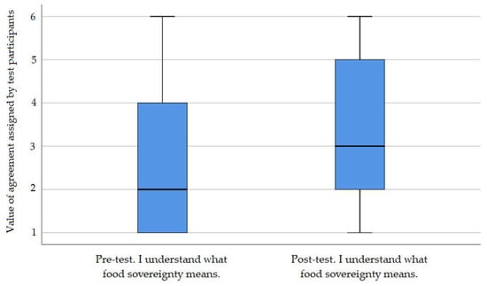PSTs involved in the study initially have an above-average opinion regarding negative feelings about the consumption of out-of-season products, the consumption of products that pollute more in the marketing process, and the importance of farmland. This average opinion improves after the intervention, which indicates a greater awareness of these issues after working on them. Likewise, the PSTs’ knowledge of the concept of “food sovereignty” is below average before the intervention, indicating that they reach the third year of their degree in Education with little or no knowledge of this concept either in Higher Education or in Compulsory Education. However, after the intervention, their self-perception of their understanding of the concept increases.