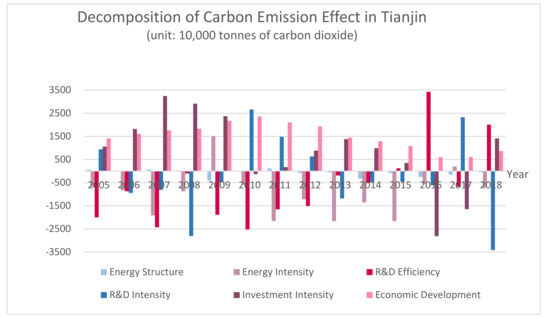 Decomposition of carbon emissions in Tianjin.