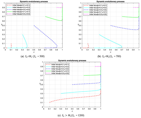 4.4. Impact of Changes in Local Government Subsidy Parameters Mt and Mr on Replicated Dynamic Systems