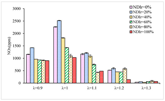 NOx with NDIr at different values of λ.