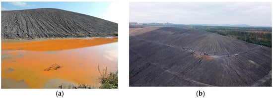 Janina mine spoil heap (a) acid rainwater from exposed pyritic spoil, (b) surface area of mining waste heap without vegetation cover.
