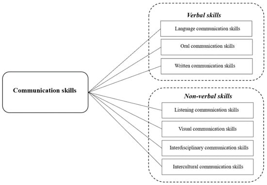 Communication skills are components of employability skills and need to be developed through the learning process at universities as well as other educational levels. Communication is defined as the process by which an articulator exchanges information with a recipient in a verbal or non-verbal manner. Thus, communication skills can be divided into verbal and non-verbal skills [18,19], which are also elements of the professional skills required by students to prepare them for the workplace. In addition, communication skills can have a big impact on the success of students in their future careers [20]. In engineering projects, employee’ communication skills play a critical role in project delivery [21,22]. The development of communication skills can also be considered through social constructivist learning theory [23], which focuses on learning as a social process where people construct new understandings through interaction, collaboration, and negotiation with others [24,25]. Adler et al. have shown that interaction with the environment affects students’ communication strategies [26]. In addition, Yusuf and Adeoye pointed out that students can be guided to communicate and interact with other parties through verbal and non-verbal communication processes [27].
