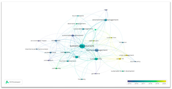 This study presents a bibliometric analysis of sustainable tourism management using the VOSviewer tool. It aims to fill the bibliometric gap in the growing body of research on sustainable tourism management and, consequently, contribute to recent scholarly interest in this subject. Therefore, its main objective is to present a qualitative and quantitative analysis of the research published on sustainable tourism management from 1996 to April 2023, which enables its scientific production. To this end, we used a total of 317 publications with 7475 cited references from Web of Science. In addition, we performed three bibliometric analyses (co-authorship, co-citation and co-occurrence of keywords). The results show the current trends in sustainable tourism management and also provide a theoretical basis regarding this subject, which is of growing importance in the tourism sector. Our study’s conclusions suggest that the priorities of sustainable tourism management are shifting from competitiveness to sustainability, in accordance with new consumer demands and the 2030 Agenda. In conclusion, a broader framework of sustainable tourism management is required.