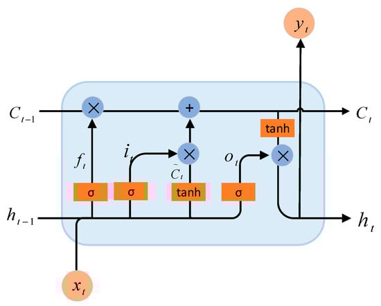 Figure 4 shows that each LSTM neural unit consists of an input gate, an output gate, and a forget gate. Data are received through the input gate, historical information is preserved through the forgetting gate, and information is output through the output gate. Equations (13)–(18) give the calculation formula.