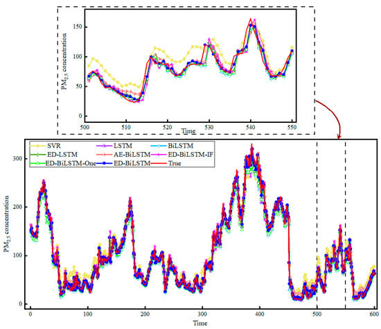- To fully extract of spatial and temporal features, we construct a dual encoder–decoder prediction model based on BiLSTM for predicting PM2.5 concentration named ED-BiLSTM. The proposed model accurately predicts PM2.5 concentration.