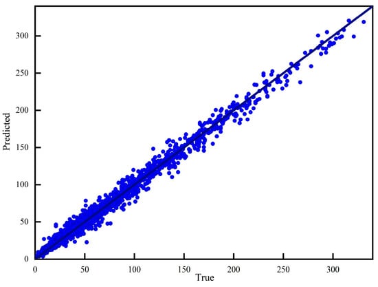 To quantify the prediction model performance, we evaluated the ED-BiLSTM model and compared models using the root mean square error (RMSE), the mean absolute error (MAE), the mean absolute percentage error (MAPE), and R squared (). Deviation between actual and predicted values is measured by RMSE and MAE, and MAPE can determine the percentage deviation. The smaller the RMSE, MAE, and MAPE values are, the more accurate the prediction will be. reflects the ability to fit data, and the value ranges from 0 to 1. The higher the is, the better the model fits the data will be. Extreme values do not affect MAE and MAPE, while RMSE uses the square of the error. This amplifies the prediction error and is more sensitive to anomalies. Therefore, we combine the evaluation metrics to evaluate the ED-BiLSTM model. The formulas are shown in Equations (22)– (25).