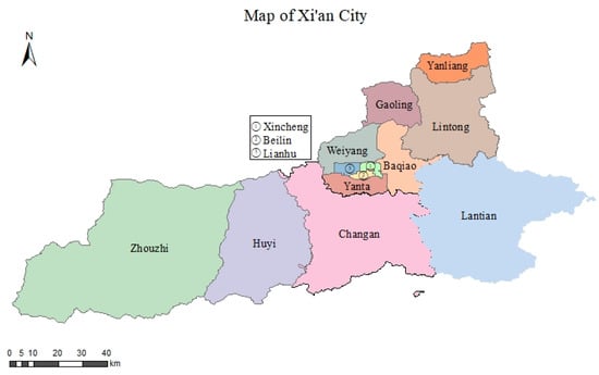 - IDW spatial interpolation results and ArcGIS visualization conclude that Weiyang, Gaoling, and Yangling districts are seriously polluted, and that pollution prevention and control in these areas should be strengthened. In addition, it is recommended that more air quality monitoring stations be installed in the main urban area of Xi’an, where air quality prediction is complicated due to the complex roads and high traffic flow during the daytime.