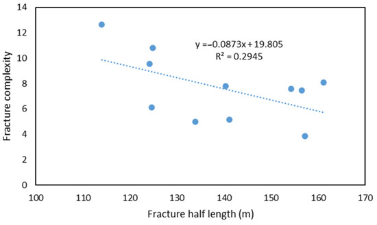 Relationship between fracture complexity and fracture half-length in different stages of Well X1–10.