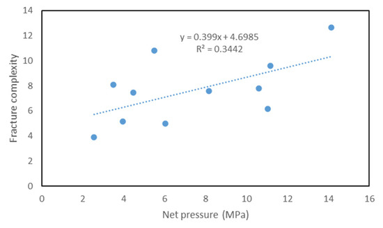 Relationship between fracture complexity and net pressure in different stages of Well X1–10.