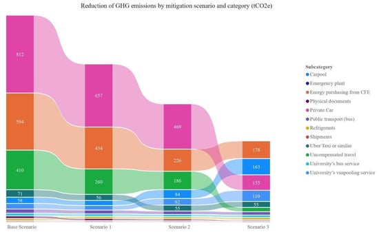 Reduction of GHG emissions by mitigation scenario for each category (t-CO2e).