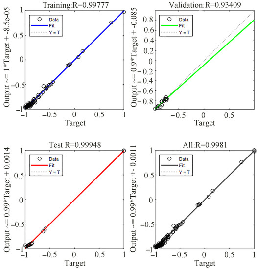 where n is the number of output variables, num is the number of network training samples, ( = 1, …, num; k = 1, 2, …, n) is the desired output of the network; ( = 1, …, num; k = 1, 2, …, n) is the training output of the network.