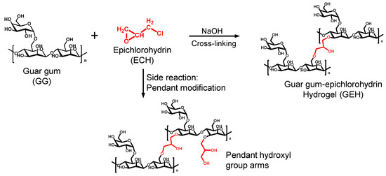 Guar gum–epichlorohydrin hydrogel (GEH) preparation process.