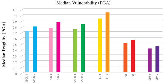 The results indicate that, in all cases, the median vulnerability (PGA) decreases by an average of 0.88 with an increase in the bridge age. This means that vulnerability is increased.