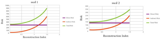 Variations of direct, indirect, and total risk versus changes in the reconstruction index for models sscd1 and sscd2.