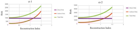 Variations of direct, indirect, and total risk versus changes in the reconstruction index for models cs1 and cs2.