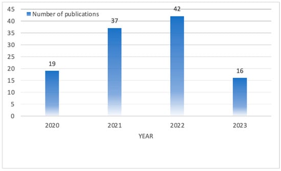 As inclusion criteria, the type of papers (article, journal, and conference paper), the English language, the time frame (2020–2023), and the publication stage (final) were defined.