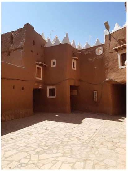 - Albini, M. Traditional Architecture in Saudi Arabia: The Central Region; The Department of Antiquities and Museum: Riyadh, Saudi Arabia, 1990. [Google Scholar]