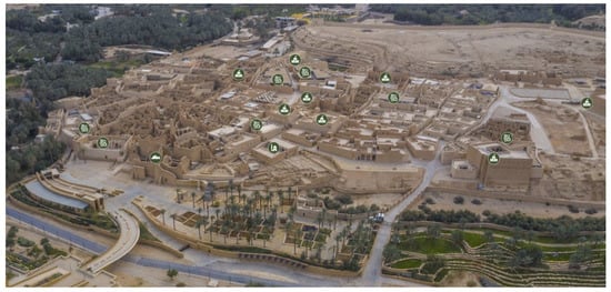 - Bay, M.A.; Alnaim, M.M.; Albaqawy, G.A.; Noaime, E. The Diachronic Heritage Management and Development of At-Turaif. Encyclopedia. 2022. Available online: https://encyclopedia.pub/entry/27075 (accessed on 17 April 2023).