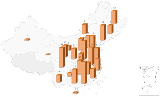 The case study area (the numbers represent the amount of innovation pilot cities in each province).