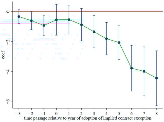 In the equation, the time dummy variables represent the observations for each pilot city n years before, during, and after implementing the innovative city pilot policy. The dummy variable was set to 1 for pilot cities and 0 for non-pilot cities.
