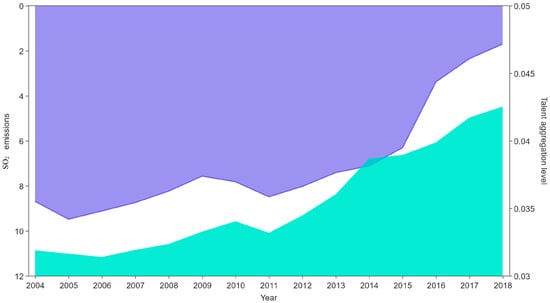 The CIPCP can reduce the emissions of SO2 from the industrial sector through the concentration of talent. At present, the importance of talent is becoming increasingly significant. Lindburg et al. (2019) analyzed the main development trends that affect skill and found an increasing demand for talent in the life sciences industry []. The International Mentorship Program (IMP), with the support of the International Mentorship Foundation for Higher Education (IMFAHE), has attracted talent and promoted the innovative development of young talents []. Young talented individuals can use their professional knowledge and skills to positively reduce SO2 emissions from the industrial sector, thereby better safeguarding the safety and sustainable development of the ecological environment.
