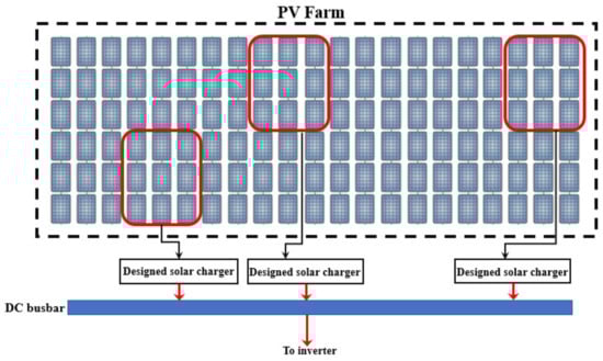 In order to completely realize the work suggested in this paper, that is to design a complete solar charger, originated from the PVA, the design of each sub-component (e.g., DC-DC converter, bi-directional converter, etc.) is thoroughly investigated. Each of the electronic components are designed according to a mathematical model, yielding for the calculation of the required elements, such as resistors, capacitors, inductors, and others. The modification of the P&O algorithm, on the other hand, was based on a computational assessment in which the conventional P&O cannot dedicate accurate duty ratios in order to maximumly extract the available power from the PVA under different shading scenarios. The working methodology behind this work can be summarized according to the following points: