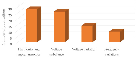 Power quality is a major concern in HMGs, whether operating in islanded mode or grid-connected mode, because of the presence of non-linear and unbalanced loads, which constitute a large part of the system. The presence of these loads creates problems such as harmonic distortion and voltage unbalances, as well as voltage sags/swell in weak grids [61]. Similarly, high levels of harmonic distortion and voltage unbalances are produced by high levels of impedance in the system, as well as load-distribution problems caused by the intermittency of RES, such as wind, solar, and FCs. See Table 4.