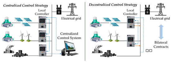 - Management and control elements: Including the elements in charge of these regulation processes (Energy Management System–EMS) for the different states of the MG (connected, islanded, and the transition between both).