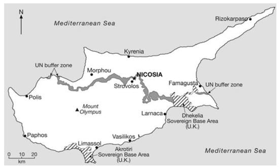 Map of Cyprus with the United Nations Buffer Zone [69].
