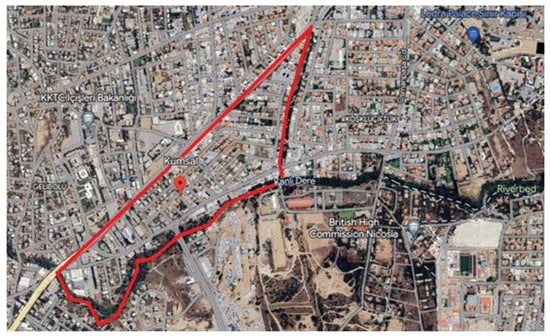 Nicosia has been the capital of the island of Cyprus for many years. It is the last divided city of Europe, which is also the largest city on the island of Cyprus and known as Lefkosia in Greek and Nicosia in Turkish. See Figure 5. The medieval Nicosia walls that encircle the city’s historic center are split in two, mirroring the geographical division of the island. Since it is a city with remnants of the histories and cultures of numerous civilizations, it has been the focus of numerous studies [70]. Nicosia began to expand quickly in the final years of British colonial rule (1878–1960), particularly in the decades following World War II. Residential settlements were established outside of the walled city throughout time [69].