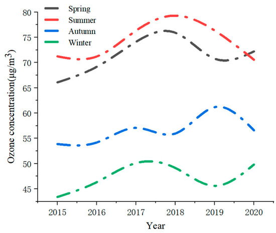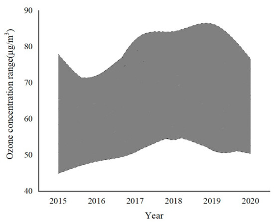 The spatial distribution of O3 concentration in different years from 2015 to 2020.