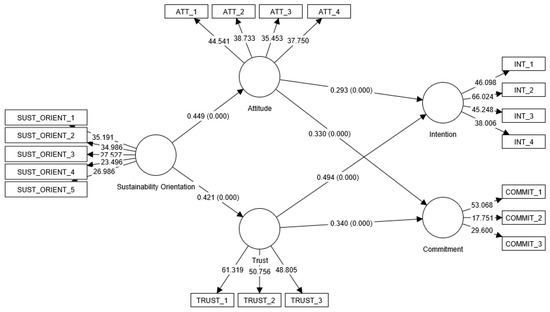44]. On the other hand, the direct relationship between sustainability orientation and commitment to a firm needs to be investigated. As customers become more environmentally and socially conscious, they will become more attached and willing to continue patronizing a firm. In this paper, however, although a direct and positive relationship is understood to exist, it is proposed that sustainability orientation has an indirect impact on the two outcome constructs, intention to adopt/use CRM systems and commitment to firms that provide CRM systems, that are mediated by attitude and trust. Consequently, the following mediation hypotheses are proposed: