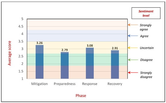 Respondents’ sentiment levels for each phase of the disaster management cycle.