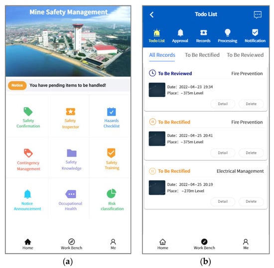 Mobile risk grading management and control interface. (a) Interface of Home; (b) Interface of WorkBench.