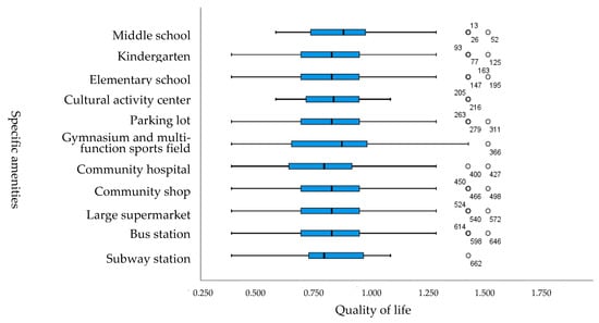 Box plot of specific amenities and quality of life in communities.
