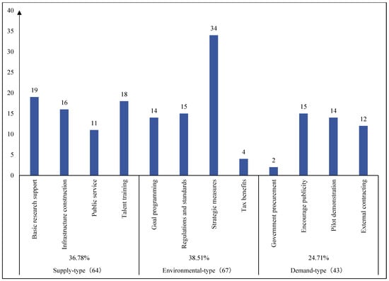 Based on the above classification ideas, this study examines the frequency statistics of the policy tools involved in fintech-related policies. The results are shown in Figure 3.