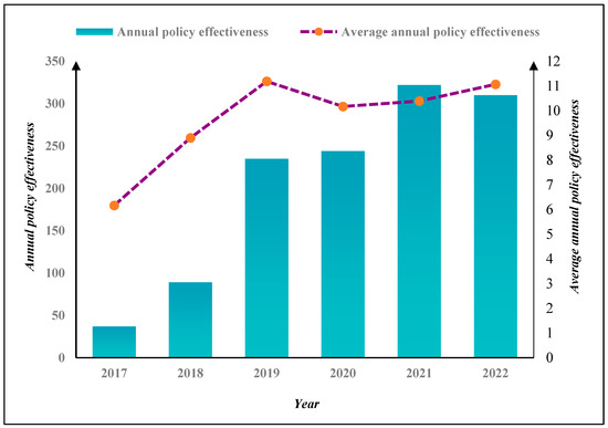 Third, the changes in policy effectiveness mainly originate from the number of policies and average effectiveness, and the latter has insufficient growth momentum. The existing policies have maintained a good trend in terms of quantity, and the average effectiveness value of policies, i.e., quality, has been receiving more attention from the government [60]. However, the real problems, such as the insufficient number of targeted policies, unclear division of labour among departmental agencies, and imperfect policy monitoring and feedback mechanisms have hindered the full utilisation of policy effectiveness and the continuous improvement of the average effectiveness level [61]. The effective release of policy effectiveness can be improved by adhering to the principle of giving equal importance to both the quantity and quality of policies [62].