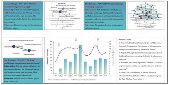As can be seen from Figure 7, using the above research results combined with the number of policies, the types of policy tools, and the stage performance characteristics of policy effectiveness, the macro-promotion strategy at the national level can be analysed. Taking 2019 and 2021 as time nodes, the evolutionary process of fintech policy can be divided into three phases: 2017–2019, 2019–2021, and 2021–2022. The specific evolutionary stages are described below.
