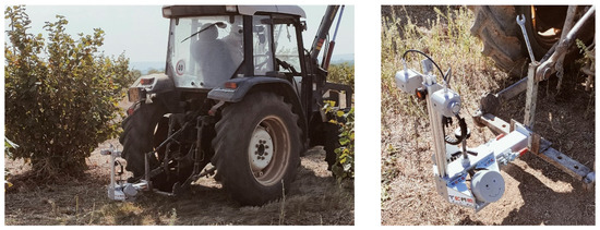 MECS-VINE® sensor mounted behind the tractor prospecting the hazelnut grove.