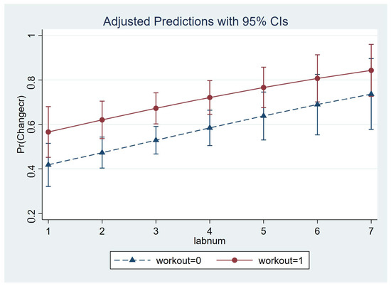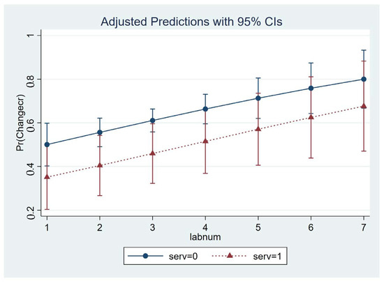 Figure 1 and Figure 2 can more intuitively reflect the impact of the number of family laborers, whether they are village cadres, and whether they have part-time work experience on farmers’ behavior of changing from corn to rice. As can be seen from Figure 1, with the increase in the number of household laborers, the probability of farmers switching from corn to rice increases significantly. The enthusiasm of village cadres to change from corn to rice is not high, and the probability of full-time farmers choosing corn over rice has increased significantly in the past. Figure 2 also shows that farmers with part-time work experience are more inclined to undertake corn-to-rice projects.