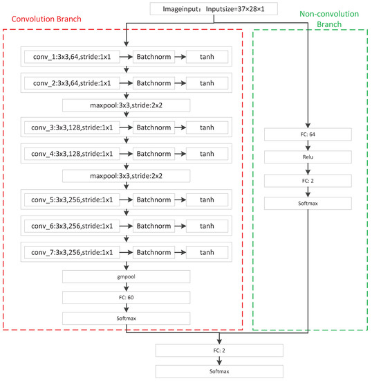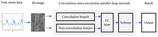 Second, a novel parallel-network-based electricity theft detection method was proposed for electricity theft detection that consists of a convolution deep branch and a non-convolution deep branch, and the results from the two branches were finally fused by a fully connected layer and a softmax layer. The overall structure of the proposed detection method can be seen in Figure 5.