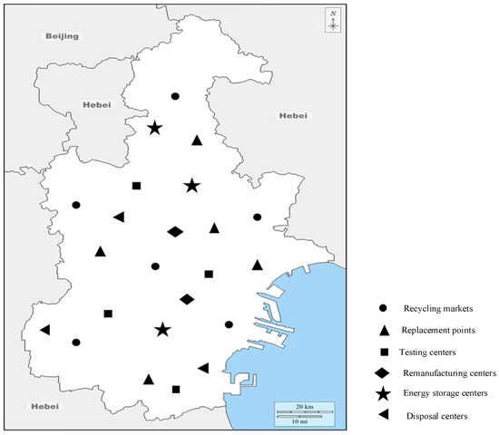 - The alternative locations and quantities of replacement points, testing centers, remanufacturing centers, energy storage centers, and disposal centers are known and have a maximum processing capacity limit.