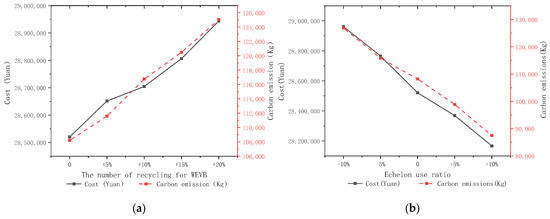 From the perspective of management decisions, this paper provided theoretical guidance and a decision basis for the layout of the reverse logistics network of WEVBs. It provided strategic and tactical references for achieving sustainable development while improving the economic efficiency of enterprises. From the analysis, it can be concluded that the level of echelon-use of WEVBs greatly influences the reduction of logistics network costs and carbon emissions. Usually, the echelon-use relies heavily on rapid sorting technology, and a large amount of traceability information is required in this process. However, most of this information is stored by upstream companies, such as battery production information from battery manufacturers and battery operation information from electric vehicle manufacturers. Considering the different interests of all companies, it is still very difficult to share this information adequately. Therefore, development of the recycling of WEVBs requires continuous policy guidance and pilot work.