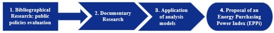 The methodological procedures in this study consisted of a combination of bibliographic, documentary, and experimental research methods. Through bibliographical analysis, we sought to understand the results of published studies on SEB public policy innovation. In the literature, we identified the data referring to the electricity tariffs from 1994 to 2020, the value of the contribution to the SEB innovation program in ANEEL’s database in the period from 2000 to 2020, as well as the objective of SEB tariff moderation [2,37]. With the experimental study, we aimed to test the hypothesis that creating public policy and adding a mandatory contribution to finance the innovation program would produce efficiency gains for the companies and system in a way that would benefit consumers via tariff reductions. Figure 1 shows the structure of the study.