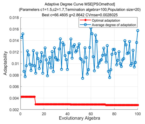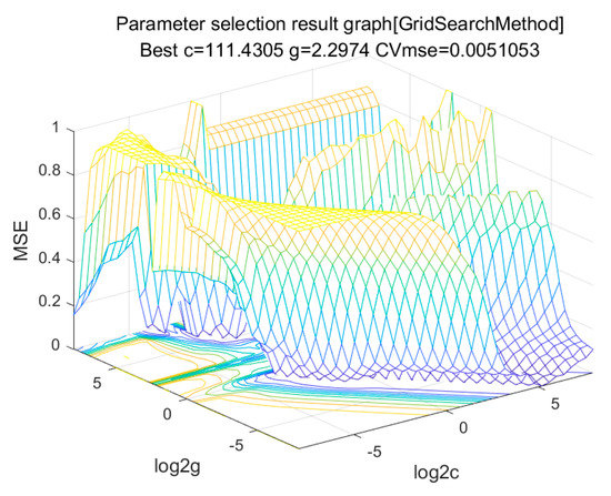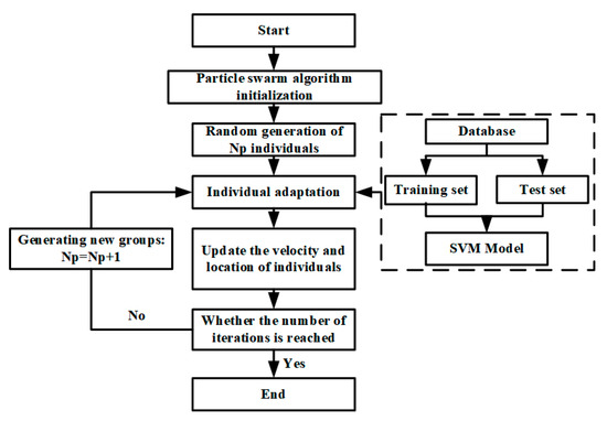 An SVM model has two critical parameters, c, and g. The c is the penalty coefficient or penalty factor, which shows the tolerance of the model to errors. The g indirectly affects the data. Compared with the traditional method, the PSO algorithm has better global search ability which cannot easily fall into local optimum. Therefore, the PSO algorithm is used to optimize the SVM model to determine the optimal hyperparameters c and g. As shown in Figure 3, the computational procedure of the PSO-SVM model is as follows.