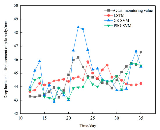 Artificial neural networks [20] are the most widely used prediction methods, but they suffer from phenomena such as overfitting [21] when there is less training data. Therefore, PSO-SVM and LSTM models are used to predict the horizontal displacement of piles in this paper.