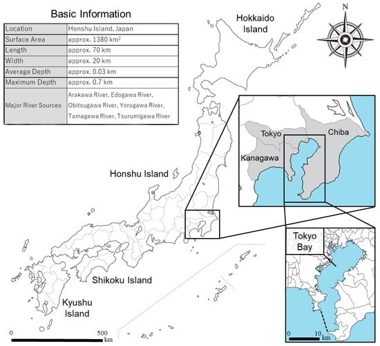 Map of Japan, the Location and General Information of Tokyo Bay. Source: https://www.ktr.mlit.go.jp/chiiki/chiiki00000083.html, accessed on 1 April 2023.