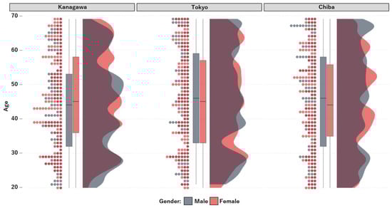 Histogram, Boxplot, and Density Distribution of Valid Responses in Each Gender and Prefecture Categories.